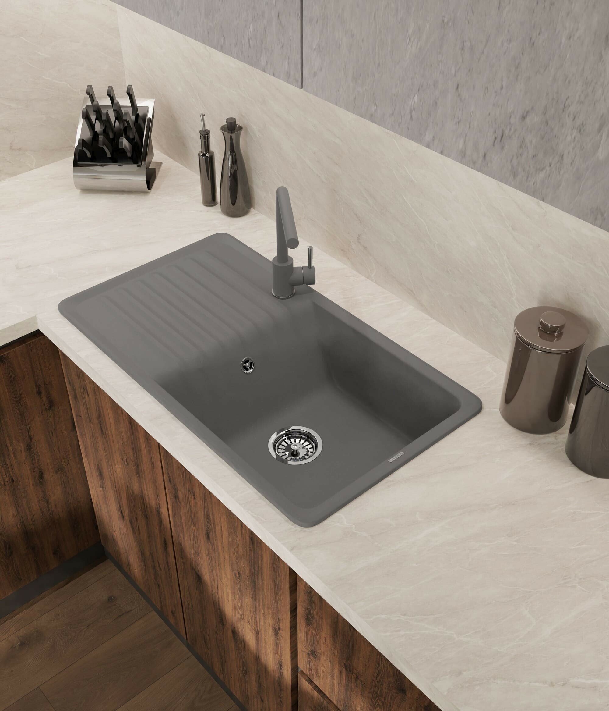 Мойка GRANFEST--QUARZ - 73 1 чаша+крыло 860*480 мм (серый)(без сифона)