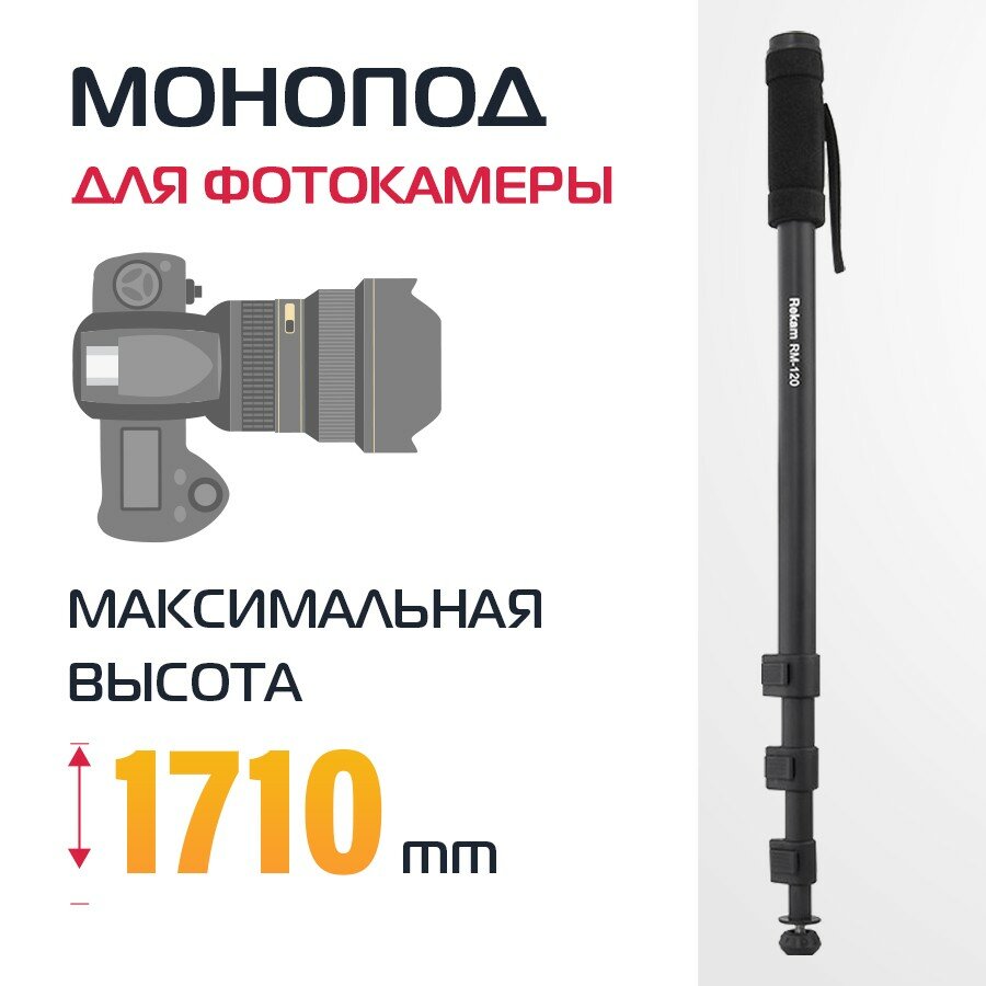 Профессиональный монопод для фотокамеры Rekam RM-120, чехол в комплекте