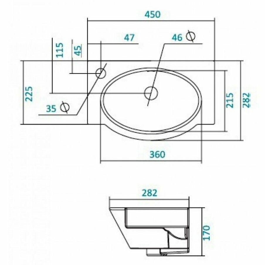 Раковина-мини SANTEK Форум 450 мм с отверстием под смеситель слева