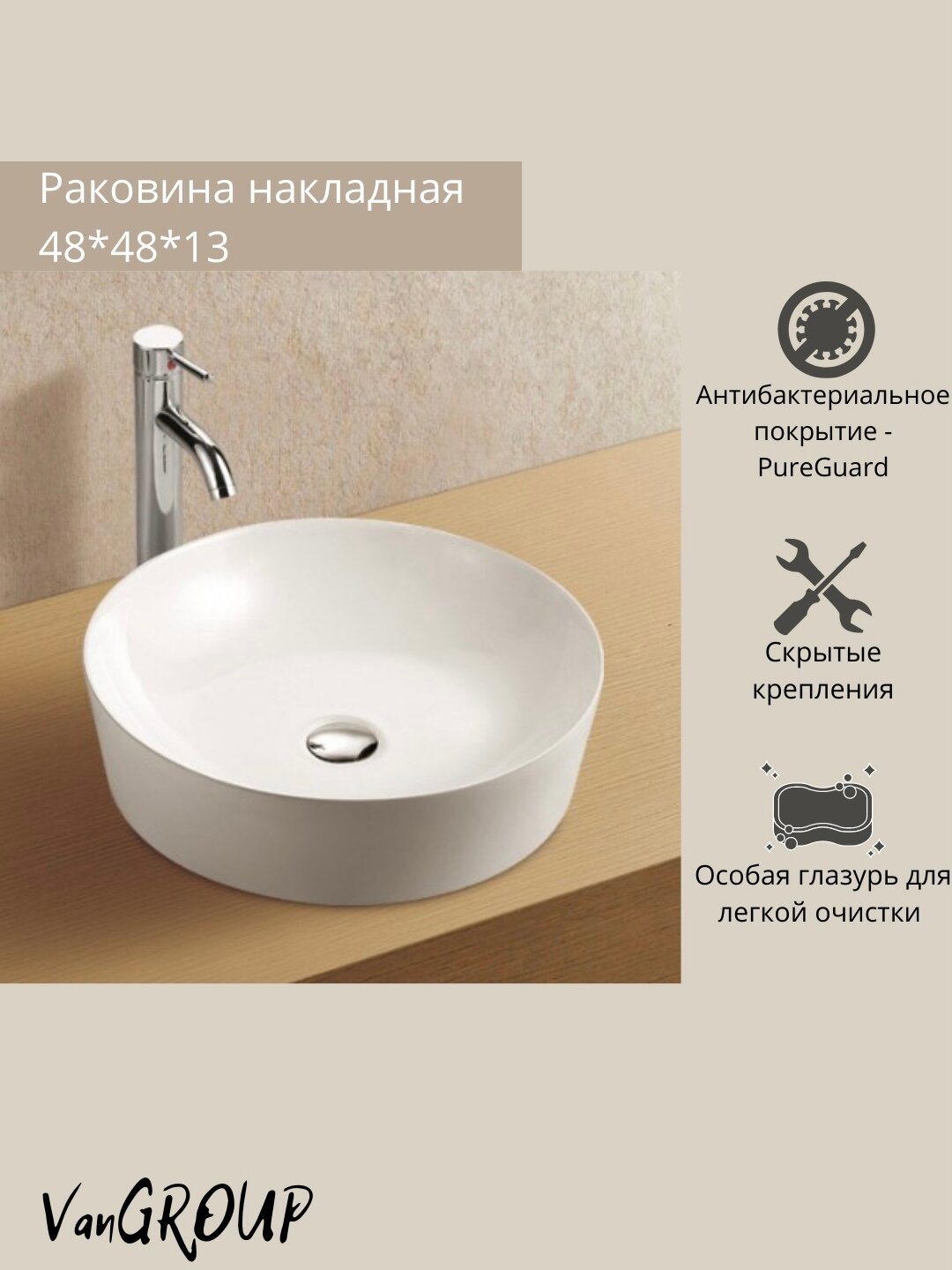 Раковина накладная WeltWasser 48/48/13 WW ELBACH 32066 10000003845