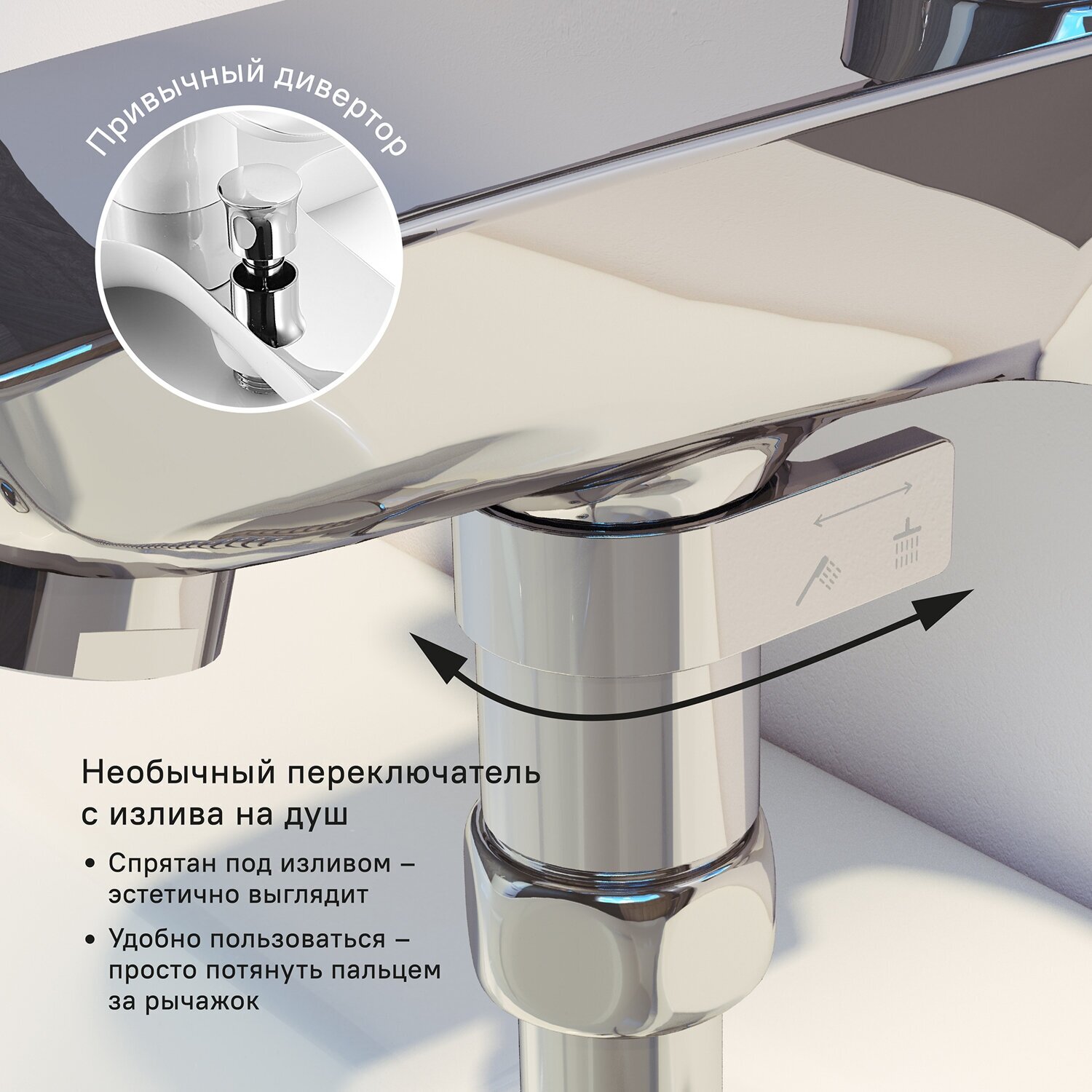 | Плюсы: | Дизайн этой линейки очень нравится, плавная и удобная ручка, интересный переключатель душ-излив! |