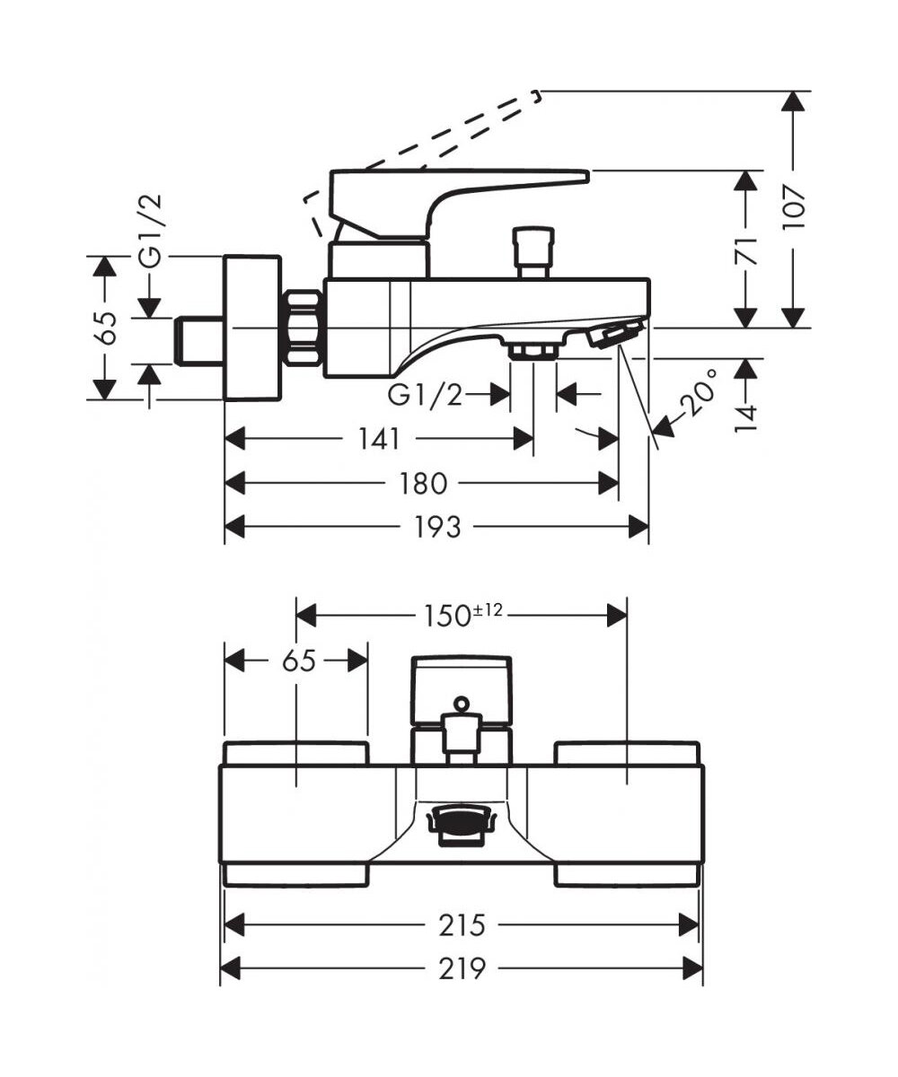 Смеситель hansgrohe Metropol для ванны, однорычажный, внешнего монтажа, с рычажной рукояткой, матовый белый 32540700