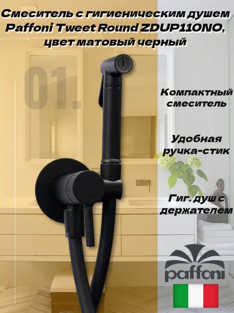 Смеситель с гигиеническим душем Paffoni TWEET ROUND MIX, цвет черный матовый ZDUP110NO
