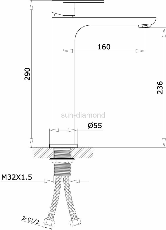 Смеситель однорычажный для умывальника, высокий Ganzer GZ21012-C черный