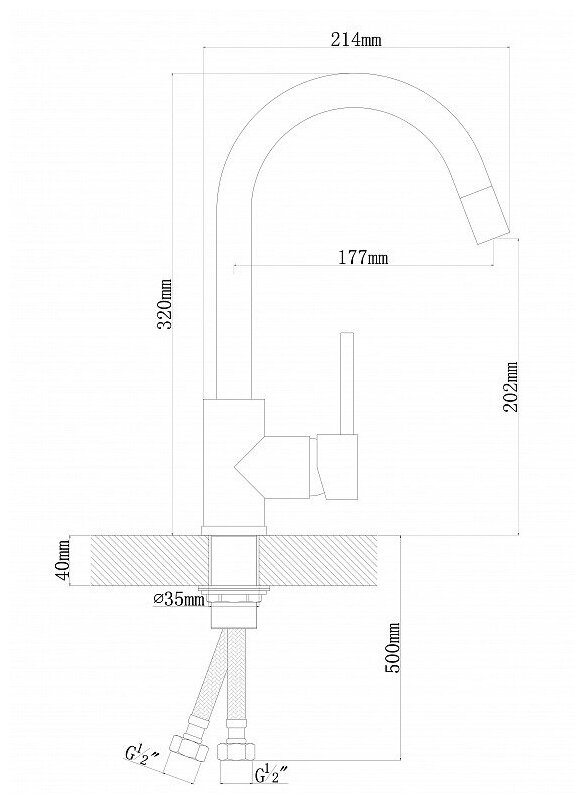 Смеситель для кухни / мойки Dr. Gans соло, высокий излив, черный