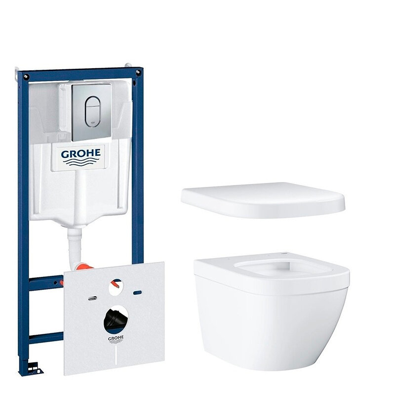 Комплект унитаза Grohe Euro Ceramic Solido 39536000 с инсталляцией с сиденьем Микролифт с клавишей Хром