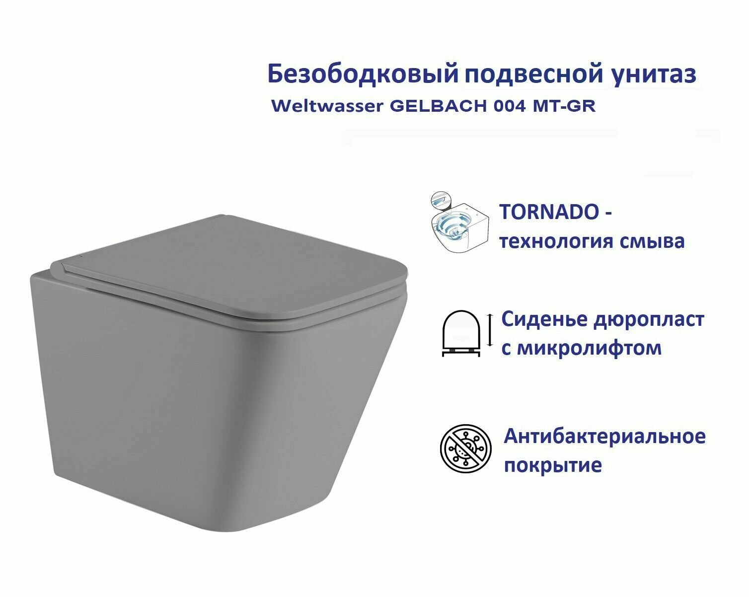Унитаз подвесной WeltWasser Gelbach 004 MT-GR 10000003749 серый матовый с сиденьем микролифт