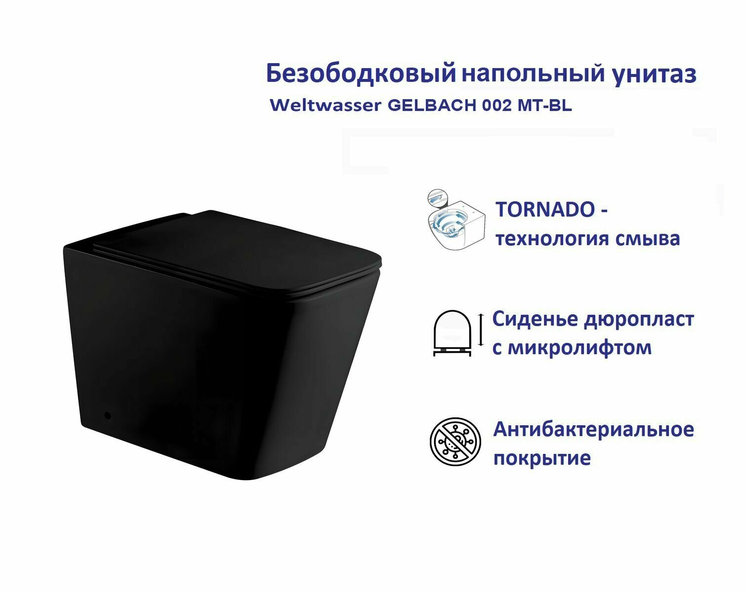 Унитаз WeltWasser WW GELBACH 002MT-BL безободковый, с сиденьем микролифт, черный матовый