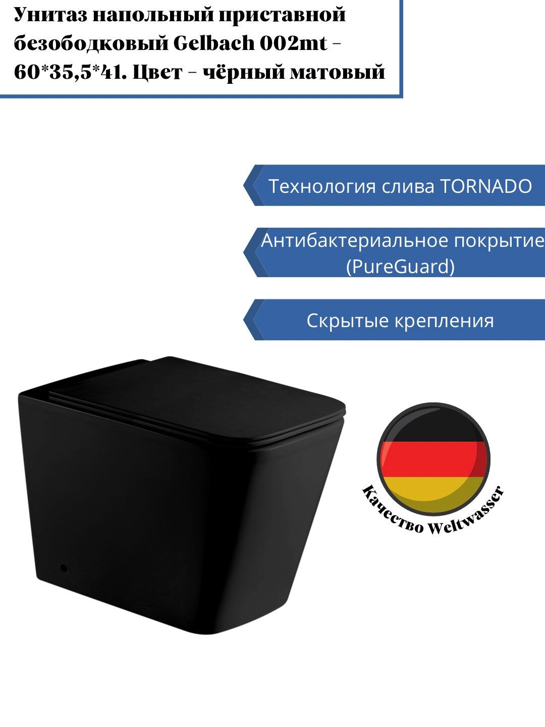 Унитаз напольный WeltWasser 60x41x35.5 WW GELBACH 002 MT-BL 10000003698 матовый черный