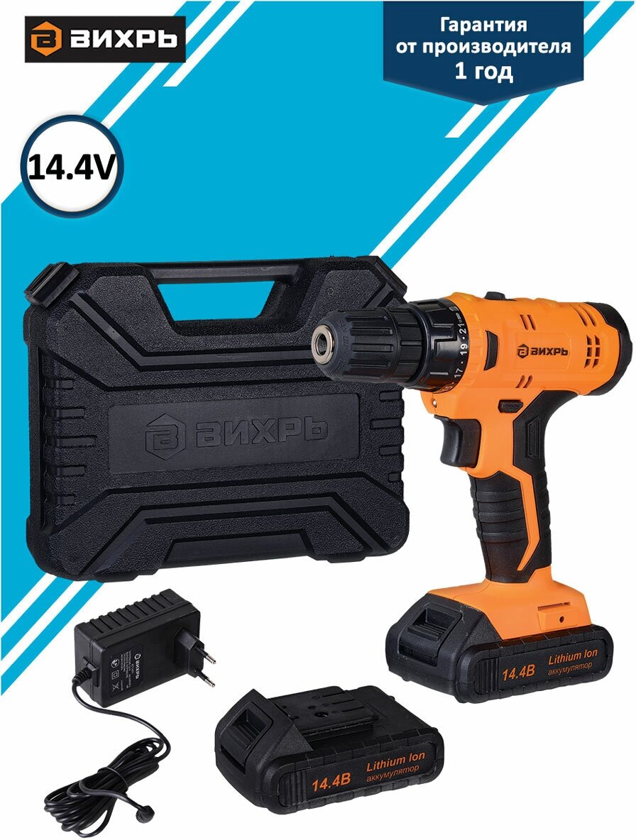 Дрель-шуруповерт аккумуляторная ДА-14.4Л-2К Вихрь, вихрь 72/14/8 (1 шт.)