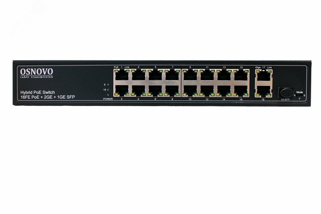 OSNOVO PoE коммутатор FE, 16 *10/100 Base-T с PoE, 2 x GE Uplink (RJ45), 1 x GE SFP Uplink, мощность PoE на порт до 30W, суммарн
