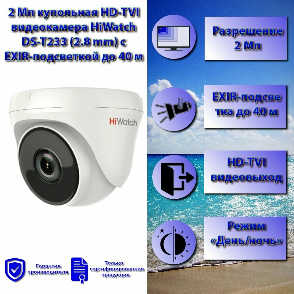 Камера видеонаблюдения HD-TVI внутренняя HIWATCH DS-T233 (2.8 mm)
