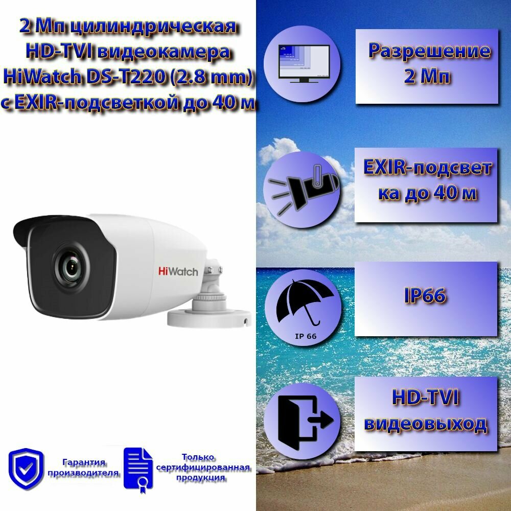 2Мп уличная HD-TVI камера HiWatch DS-T220 (2.8 mm)