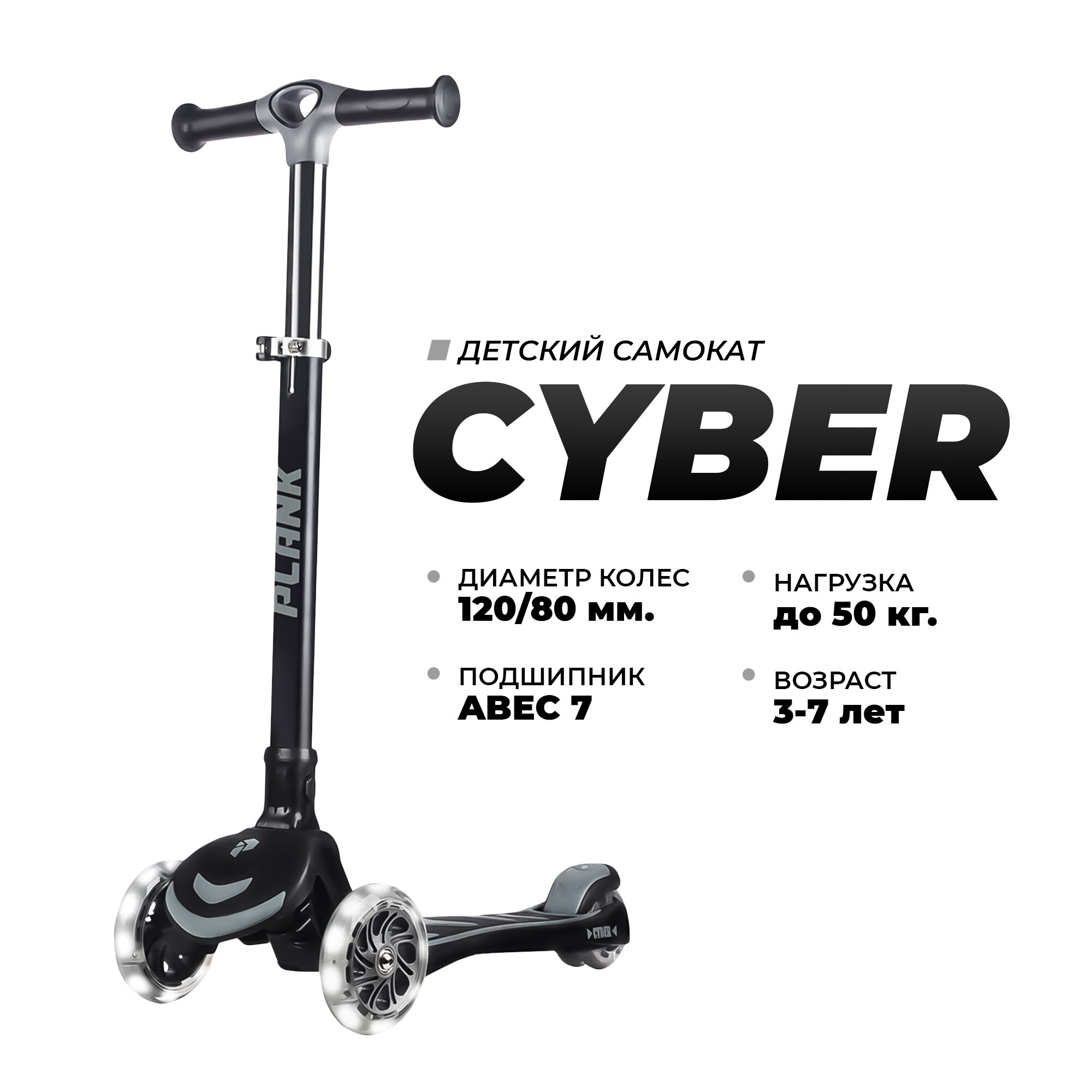 Cамокат детский 3-х колёсный Plank Cyber