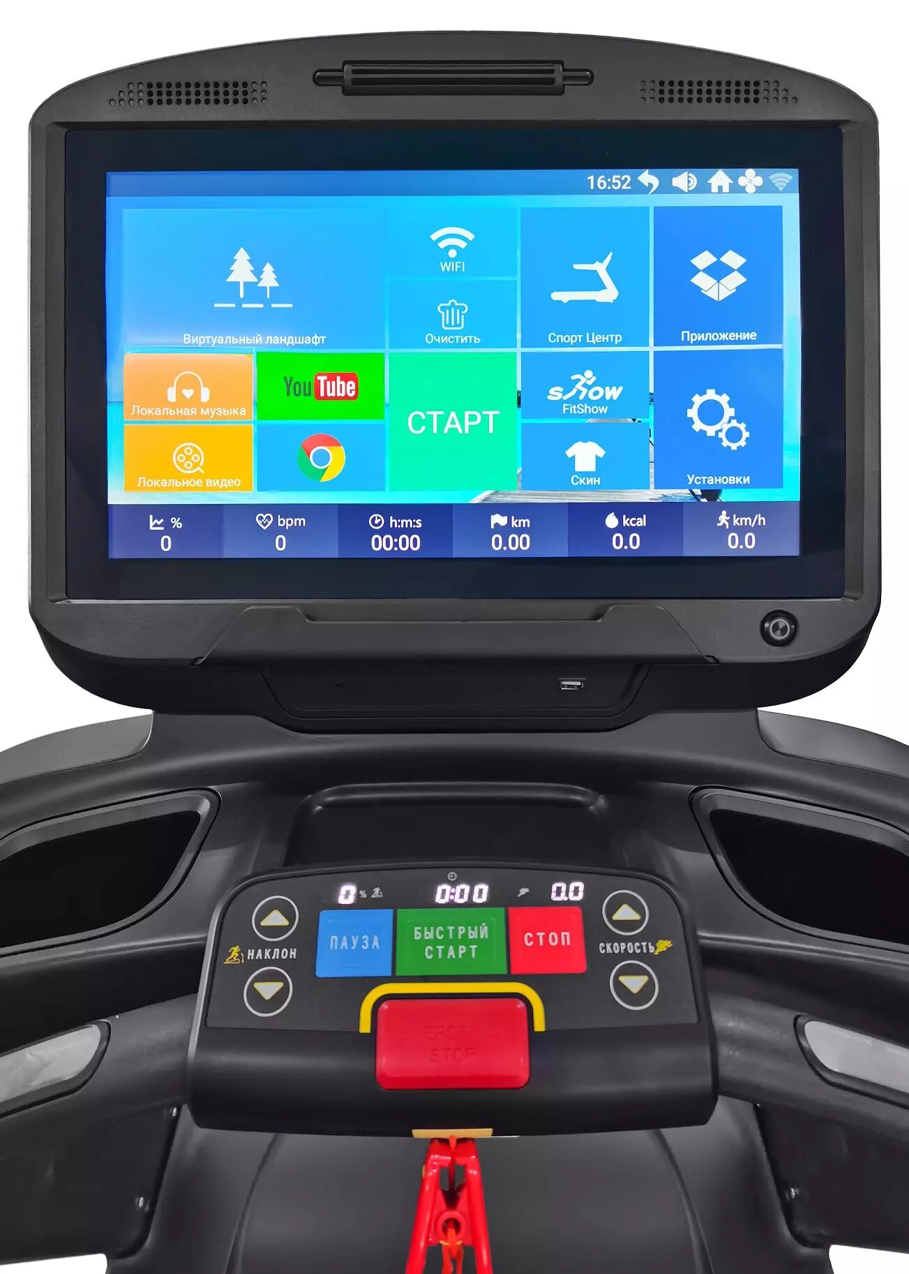 | Особенности | Wi-Fi, USB-разъем, mini-Jack 3.5 мм (Aux); встроенный кардиодатчик; встроенные устройства: динамики, вентилятор; подставка для книг, подставка для стакана |