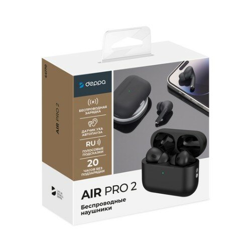 Купить Беспроводные наушники с микрофоном Air Pro, TWS, BT 5.0, 250 мАч, QI, IPX4, черный, Deppa