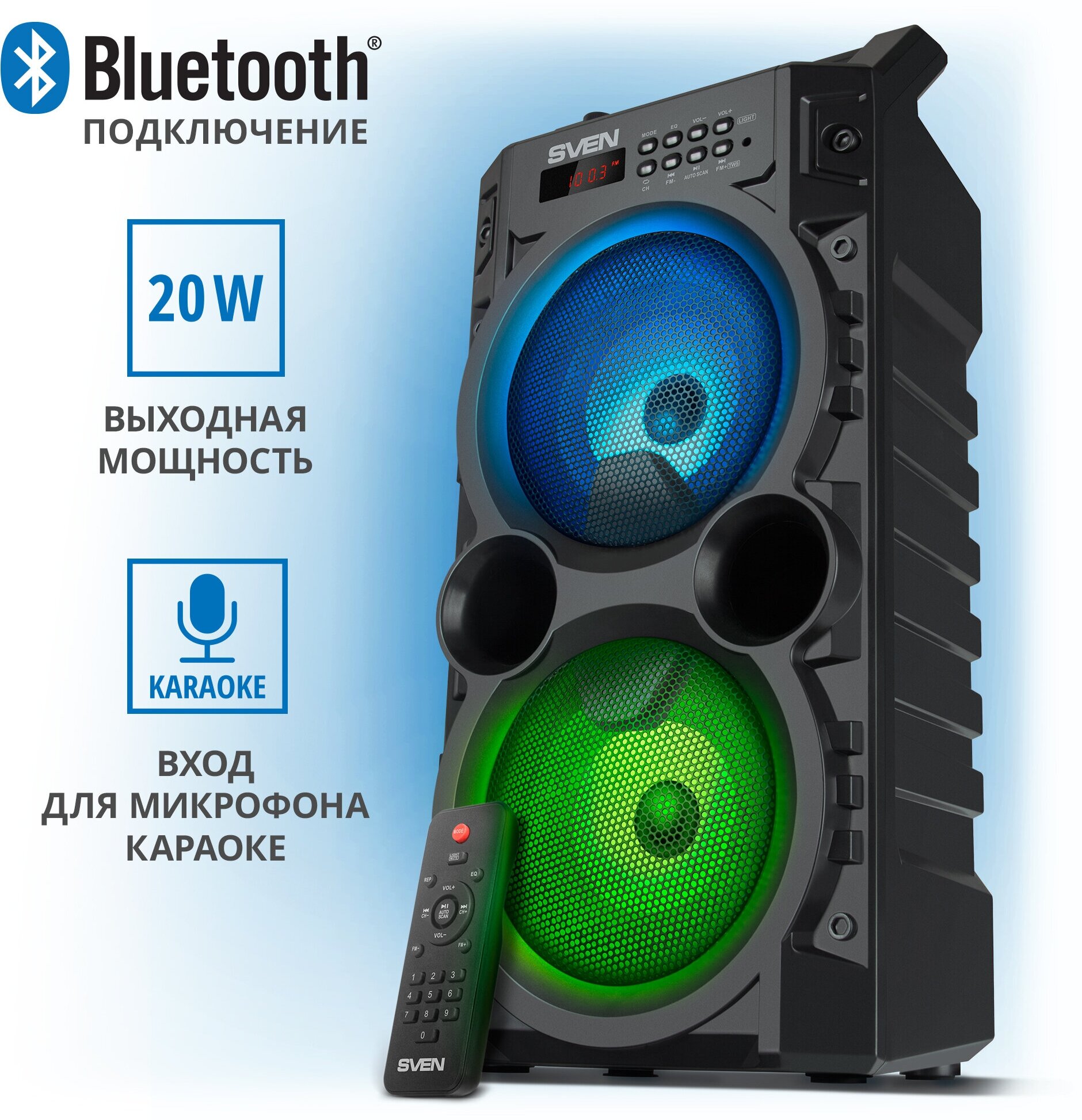 Многофункциональная портативная акустическая система Sven PS-440 черный 20W 2.0 BT с подсветкой
