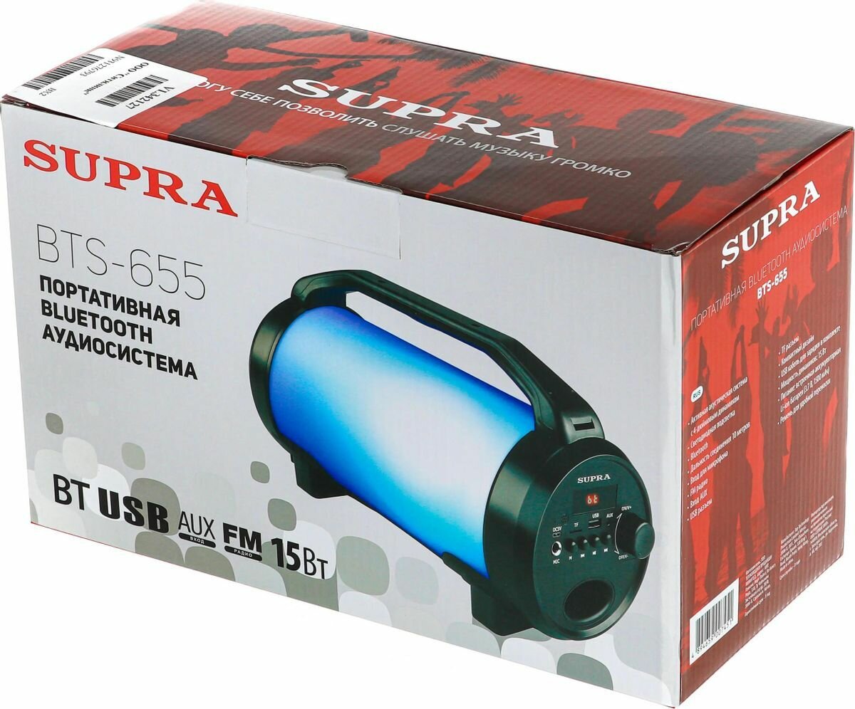 Портативная акустическая система Supra Bts-655, черный .