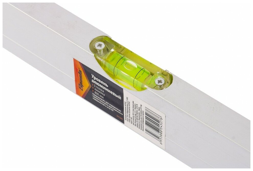Уровень алюминиевый, 800 мм, 3 глазка, линейка Sparta [331265]