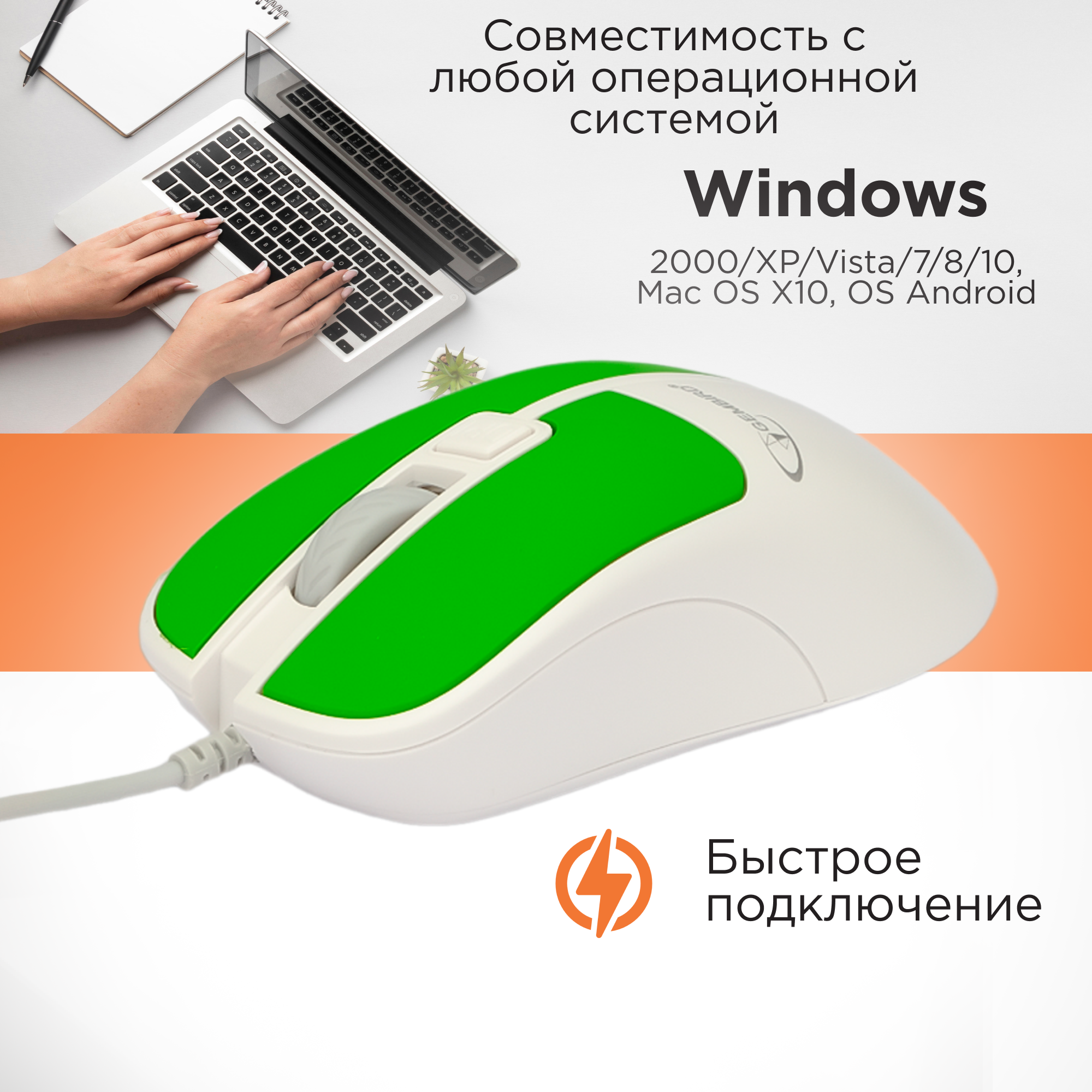 Мышь Gembird Mop-410-grn, Usb, зелёный, 3 кнопки+колесо кнопка, soft touch, 1600 Dpi, кабель 1.5м 17