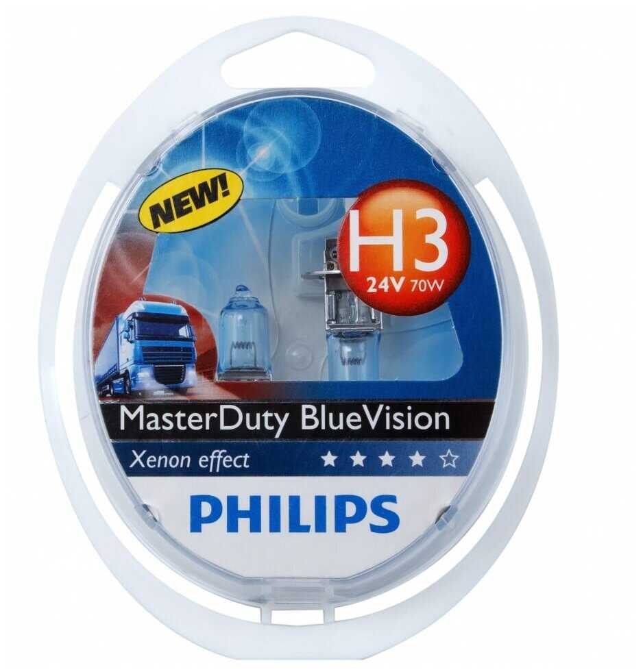 Лампа 24V H3 70W Pk22s Бокс (2Шт.) Master Duty Blue Vision Philips Philips арт. 13336MDBVS2