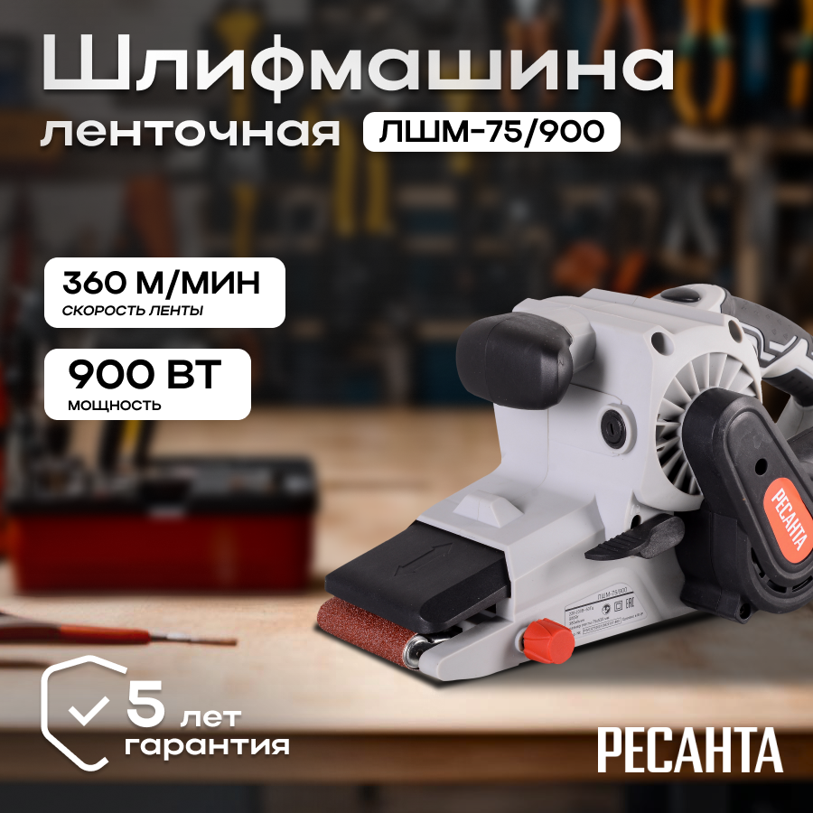 Ленточная шлифмашина РЕСАНТА ЛШМ-75/900, 900 Вт, коробка