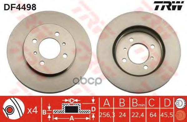 Df4498 Диск Тормозной Mitsubishi Colt 1.8 92>97/Lancer R14 1.3-1.8(Gen) 00> Передний TRW арт. DF4498