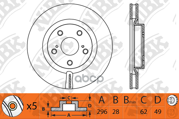 NIBK RN1241 Торм.диск пер.вент.[296x28] 5 отв. 2шт