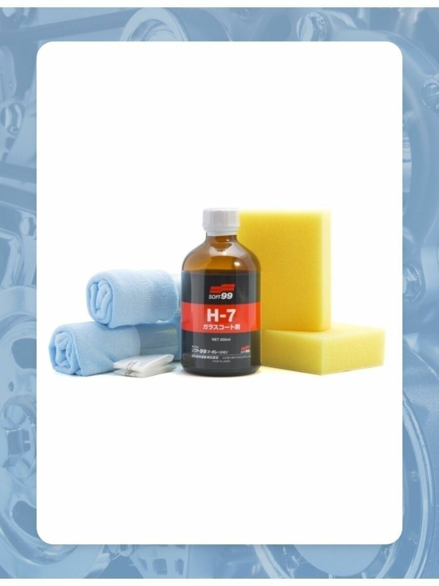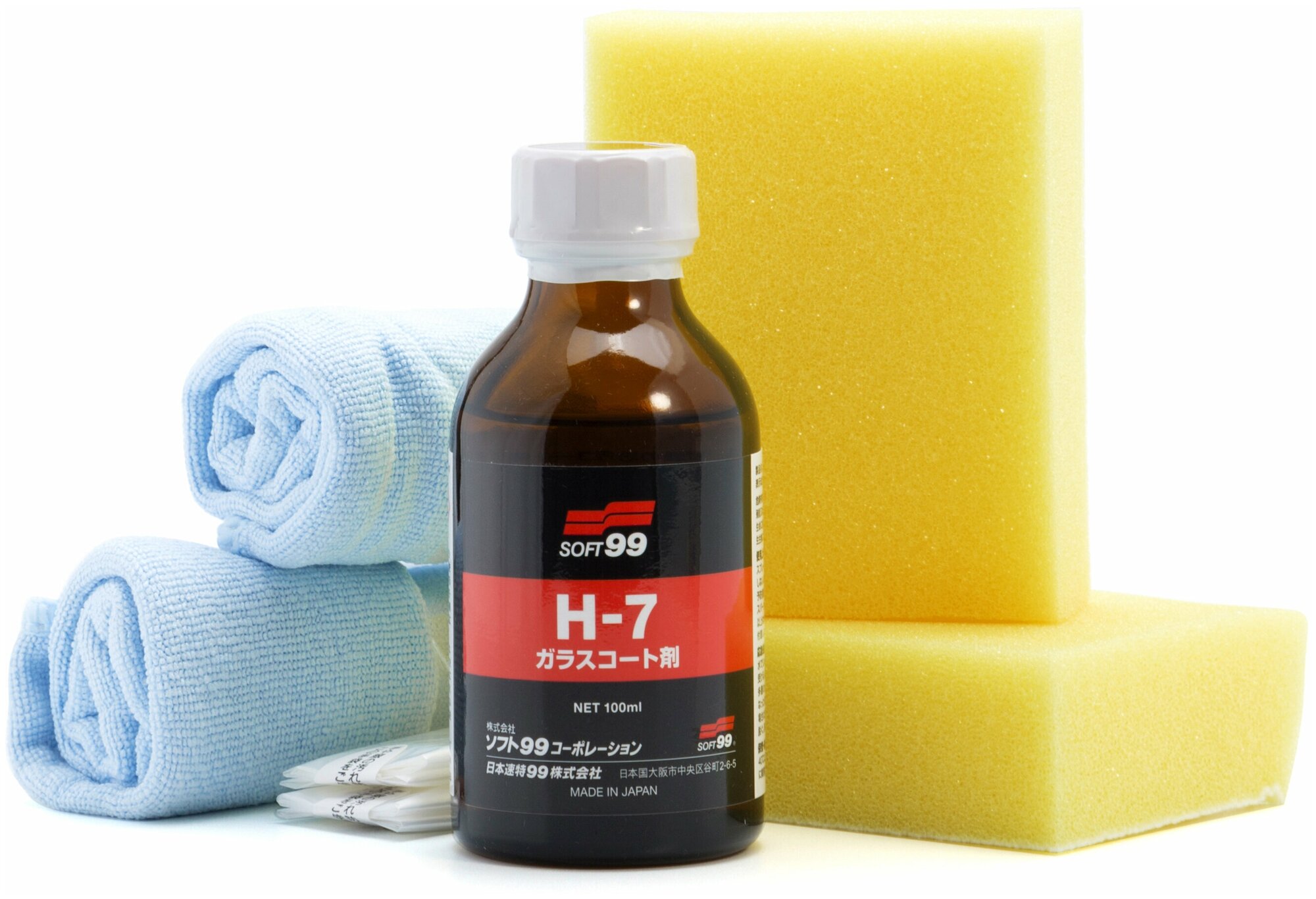 Защитное покрытие кузова (жидкое стекло) Soft 99 H-7 Glass Coating, с диоксидом кремния, с водоотталкивающим эффектом, флакон 100мл, (+2 губки и салфетки, перчатка), арт. 10088