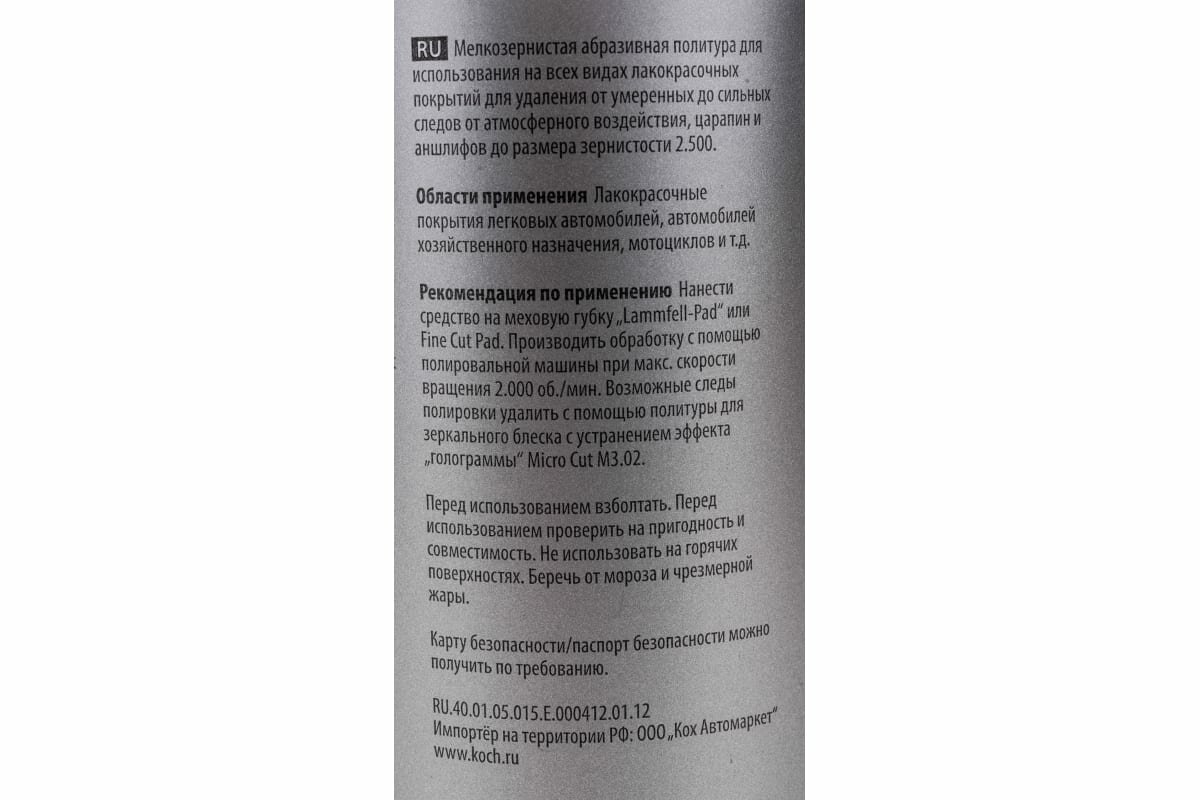 KOCHCHEMIE 405250 Полироль кузова абразивная мелкая Fine Cut F6.0 250мл KOCH