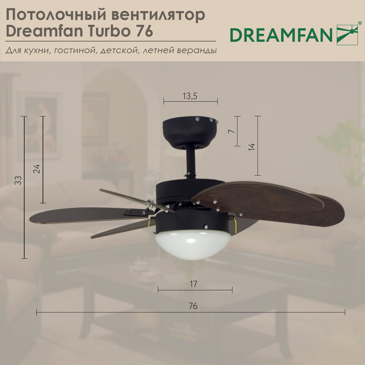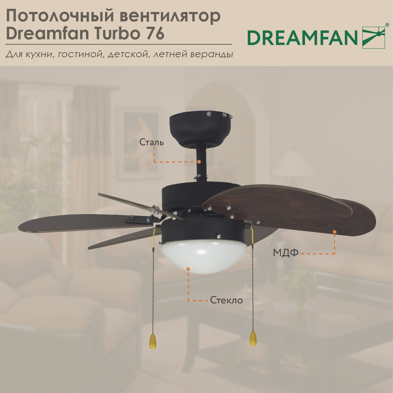 Потолочный люстра-вентилятор Dreamfan TURBO 76