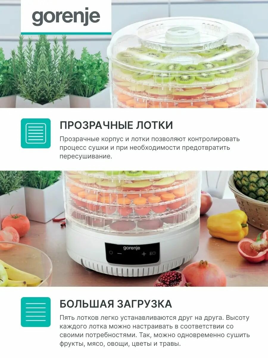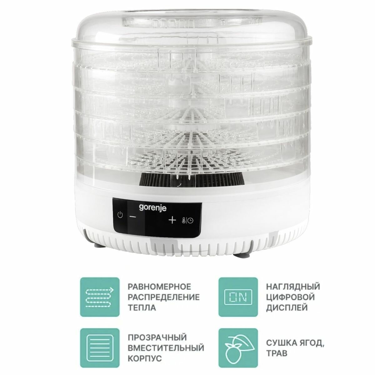 Сушилка для овощей и фруктов Gorenje FDK500GCW, белый, 5 поддонов
