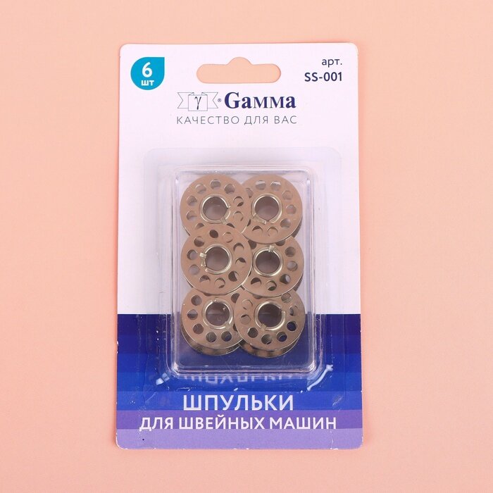 Аксессуары для швейных машин Gamma Набор шпулек, d = 2,2 см, 6 шт, металл, SS-001