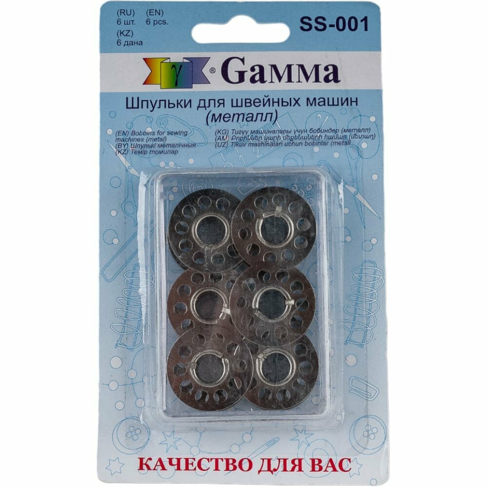 Принадлежности для бытовых швейных машин "Gamma" Шпульки для шв.маш. металл SS-001 6 шт в блистере .