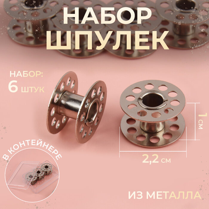 Набор шпулек, d = 2.2 см, 6 шт, металл, SS-001, 2 шт.