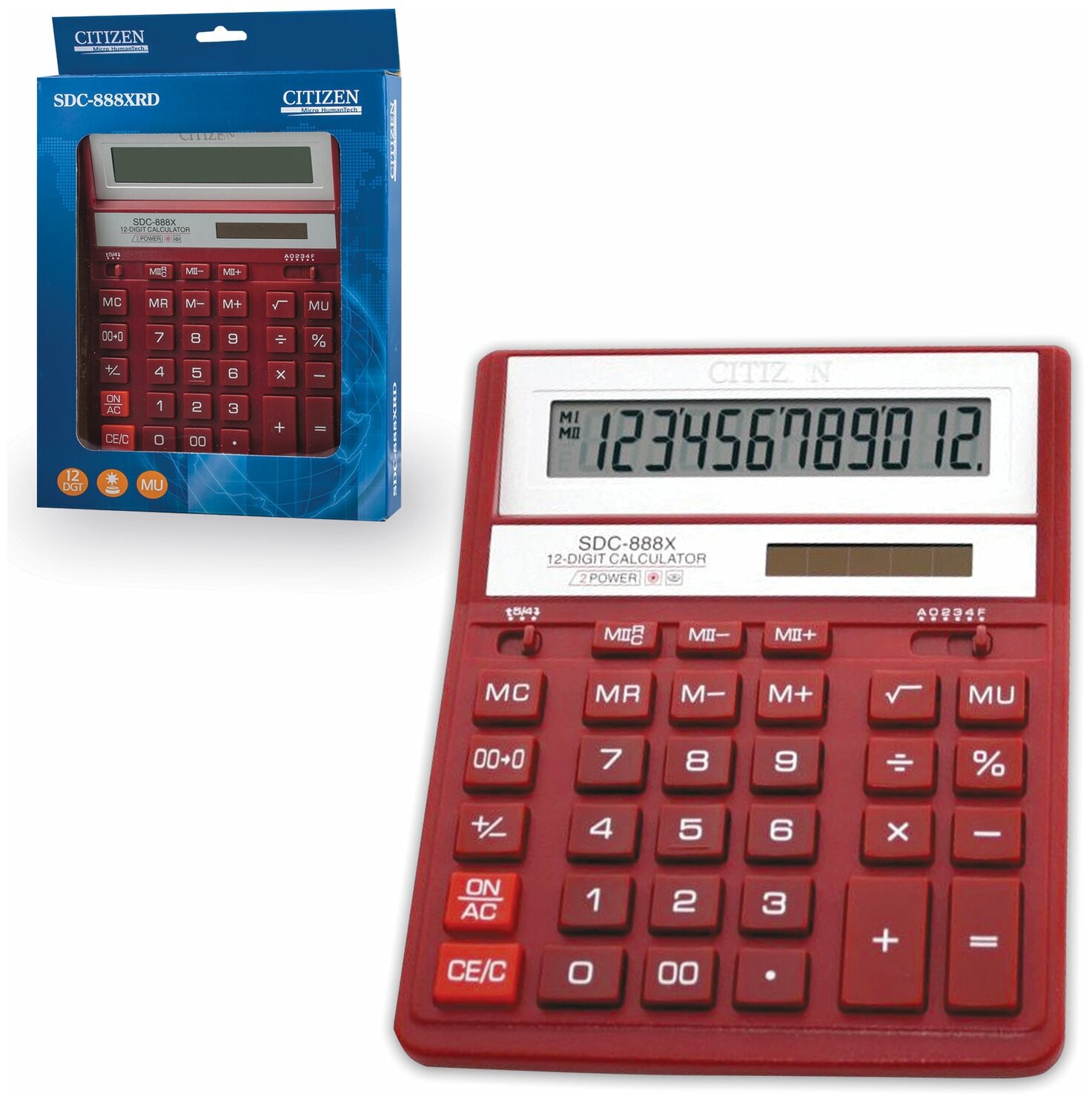 Калькулятор CITIZEN SDC-888XRD, 12-разрядный красный