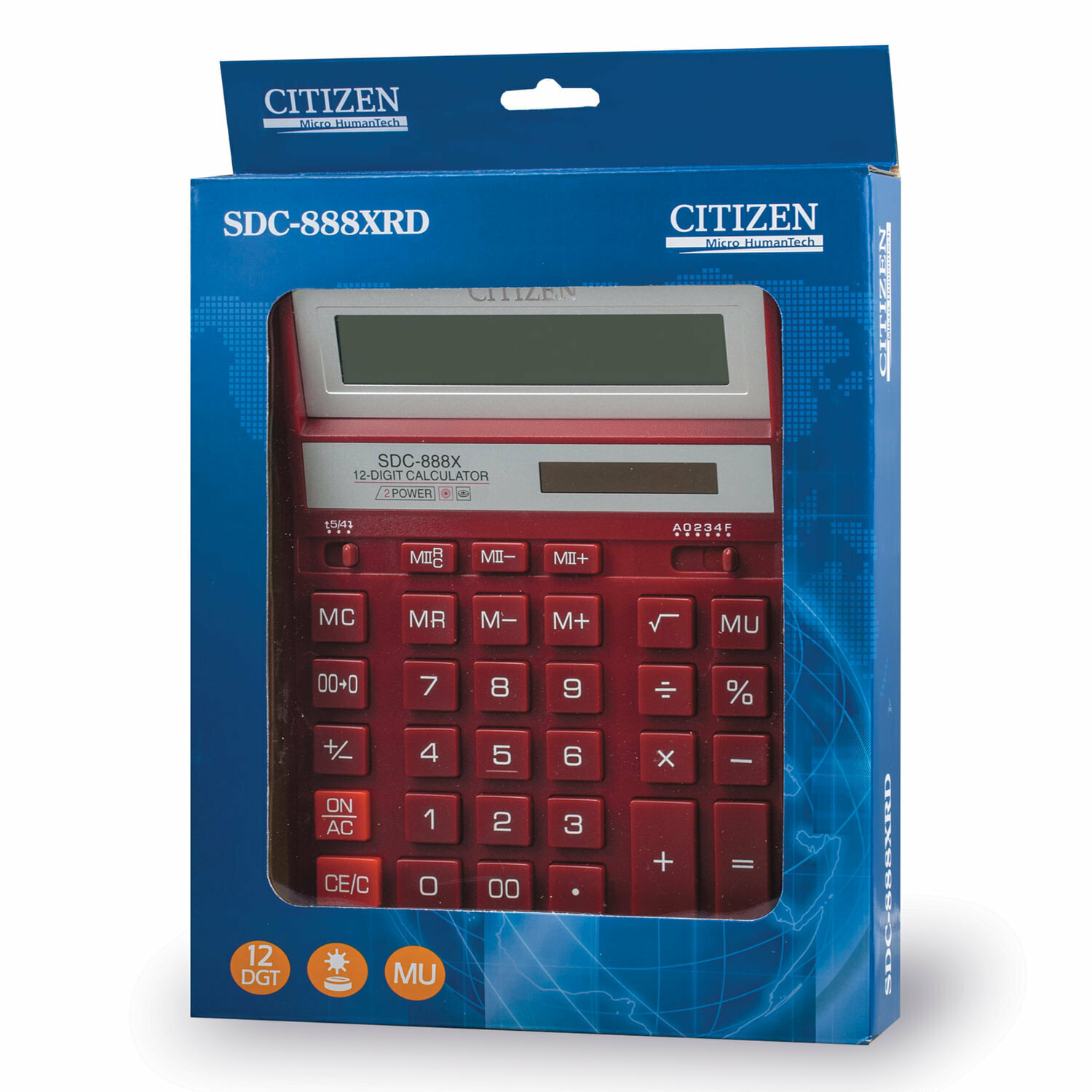 Купить Citizen Калькулятор настольный 12-разрядный, Citizen Business Line SDC-888XRD, двойное питание, 158 х 203 х 31 мм, красный