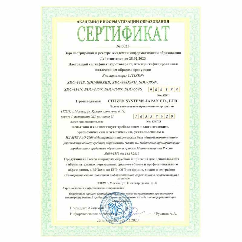 СохранитьCitizen Калькулятор настольный 12-разрядный SDC-888XWH, 158*203*31мм, двойное питание, белый интересное: