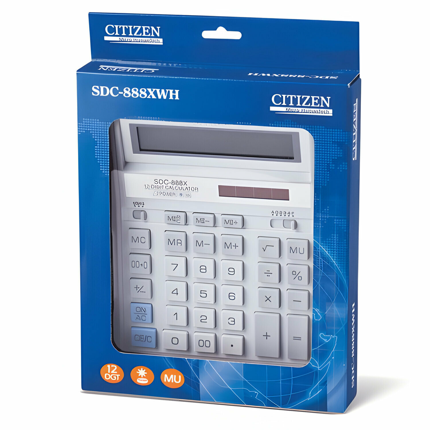 Калькулятор настольный Citizen полноразмерный, бухгалтерский, 12 разрядов, белый (SDC-888XWH)