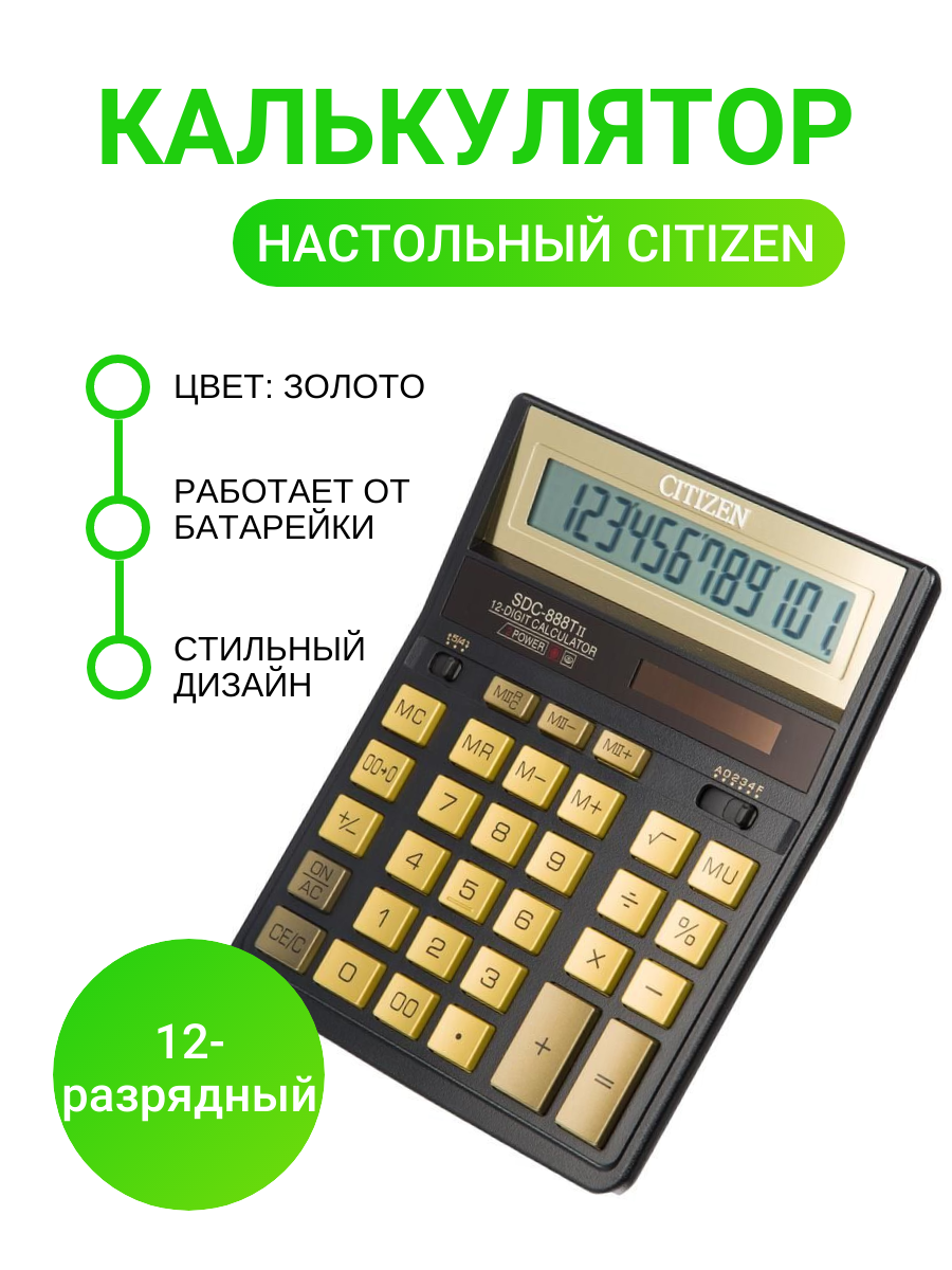 Купить Калькулятор настольный CITIZEN SDC-888TII Gold,12-разрядный