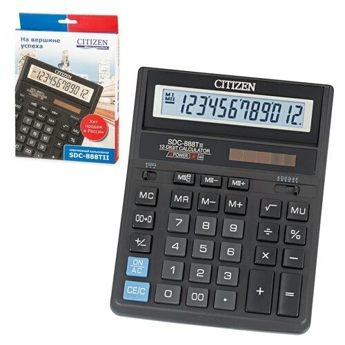 Калькулятор настольный Citizen SDC-888TII, 12 разрядов, двойное питание, 158×203×31мм, черный