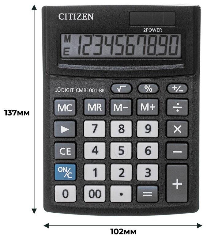Калькулятор настольный CITIZEN BUSINESS LINE CMB1001BK, малый (136x100 мм), 10 разрядов, двойное питание