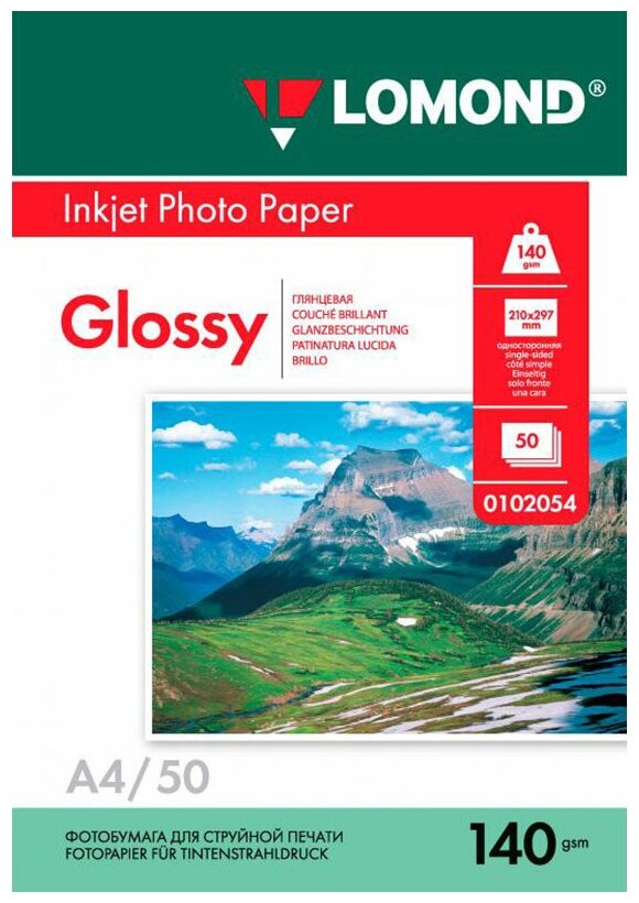Фотобумага Lomond глянцевая односторонняя (0102054), A4, 140 г/м2, 50 л.