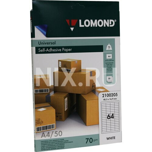 Бумага LOMOND 2100205 самоклеющаяся 64 части А4 (48,5 х 16,9 мм) 70 г/м2, 50 листов