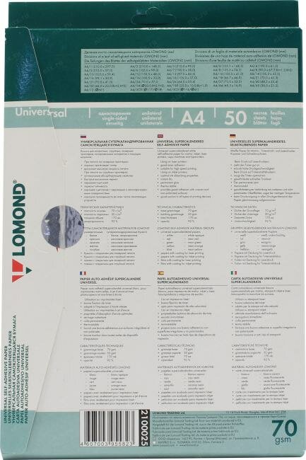 Самоклеящаяся бумага для этикеток A4 Lomond 2100025
