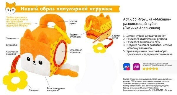 Развивающий кубик Лисичка Апельсинка Мякиши 633 интересное: