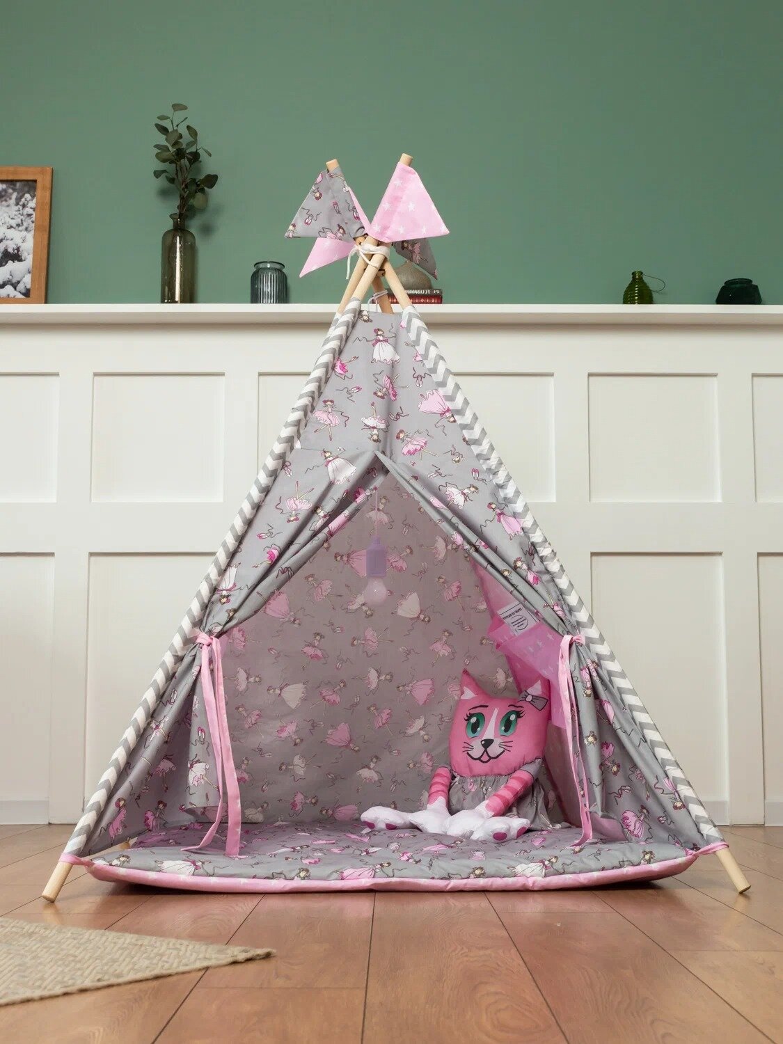 Вигвам детский ВигвамиЯ "Маленькие балеринки"с пышным ковриком, флажками