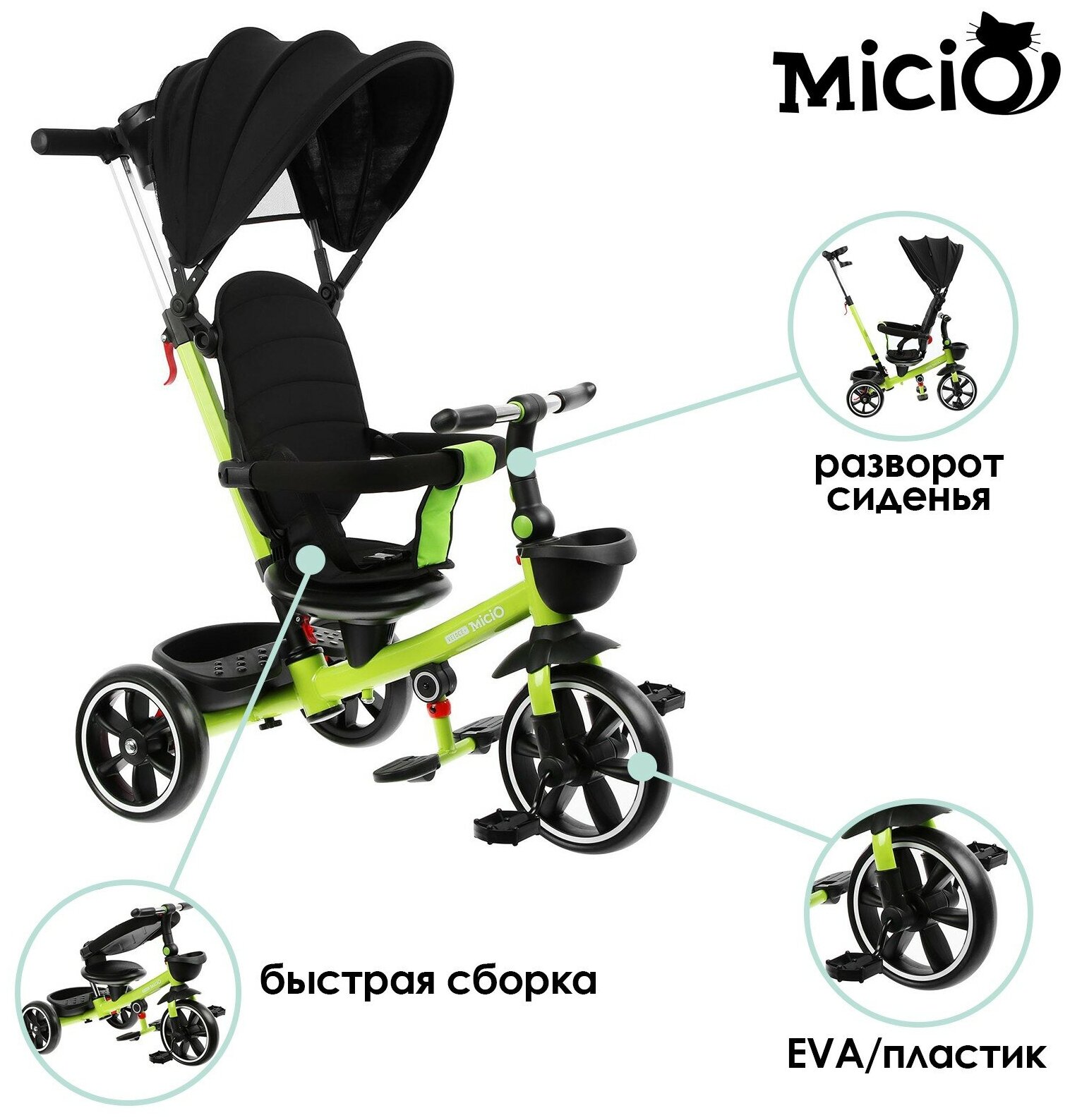 Трехколесный велосипед MICIO Veloce +,колеса EVA 10"/8", салатовый 5290584
