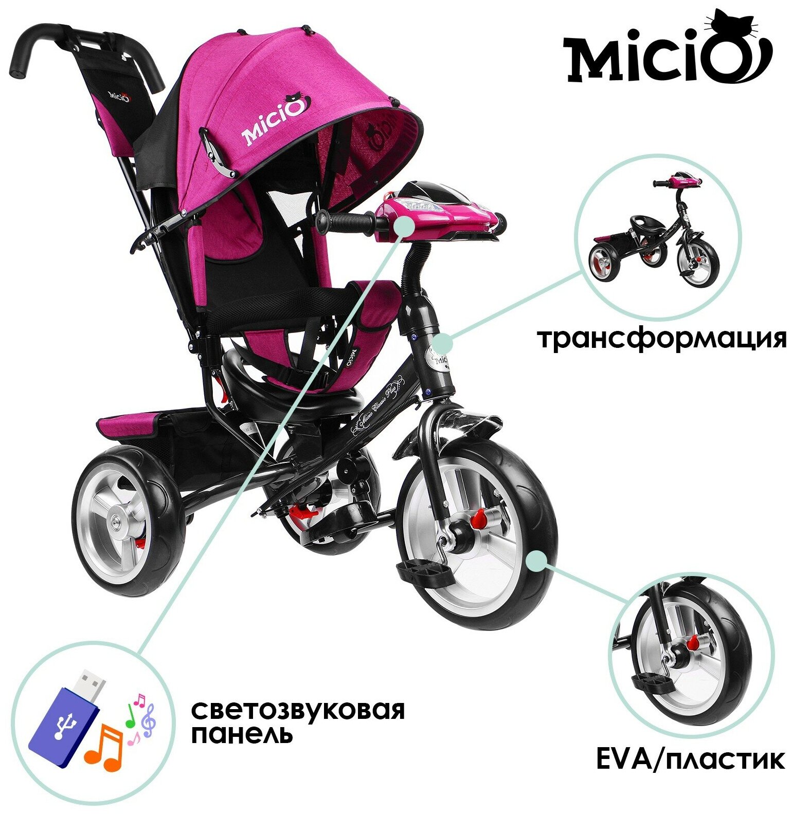 Micio Велосипед Трёхколёсный Micio Classic Plus, Колёса Eva 10 3871487 интересное: