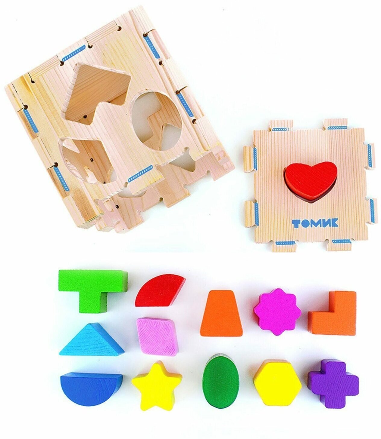 Деревянный сортер Томик "Геометрические фигуры", развивающий игровой набор из 14 деталей